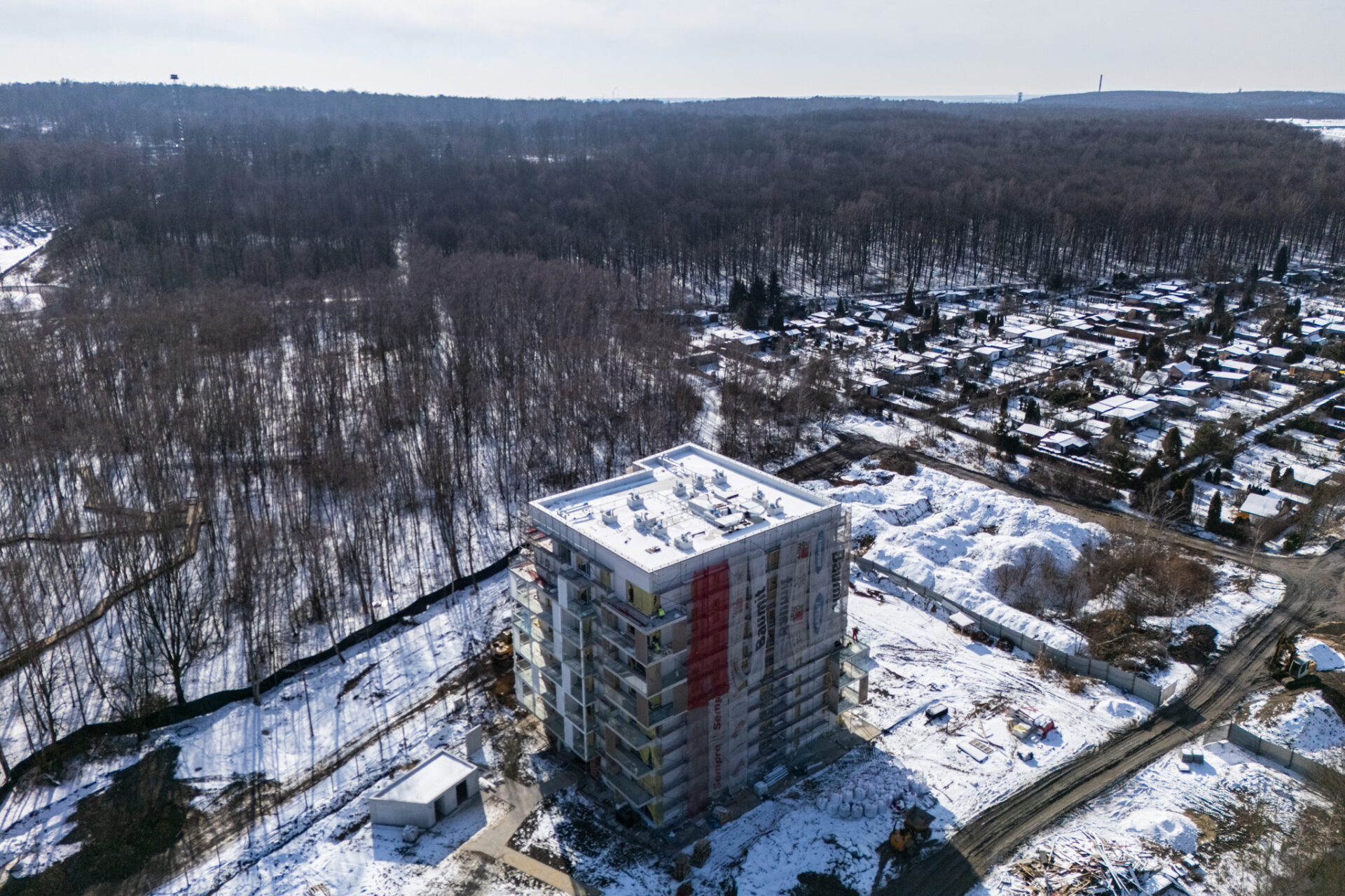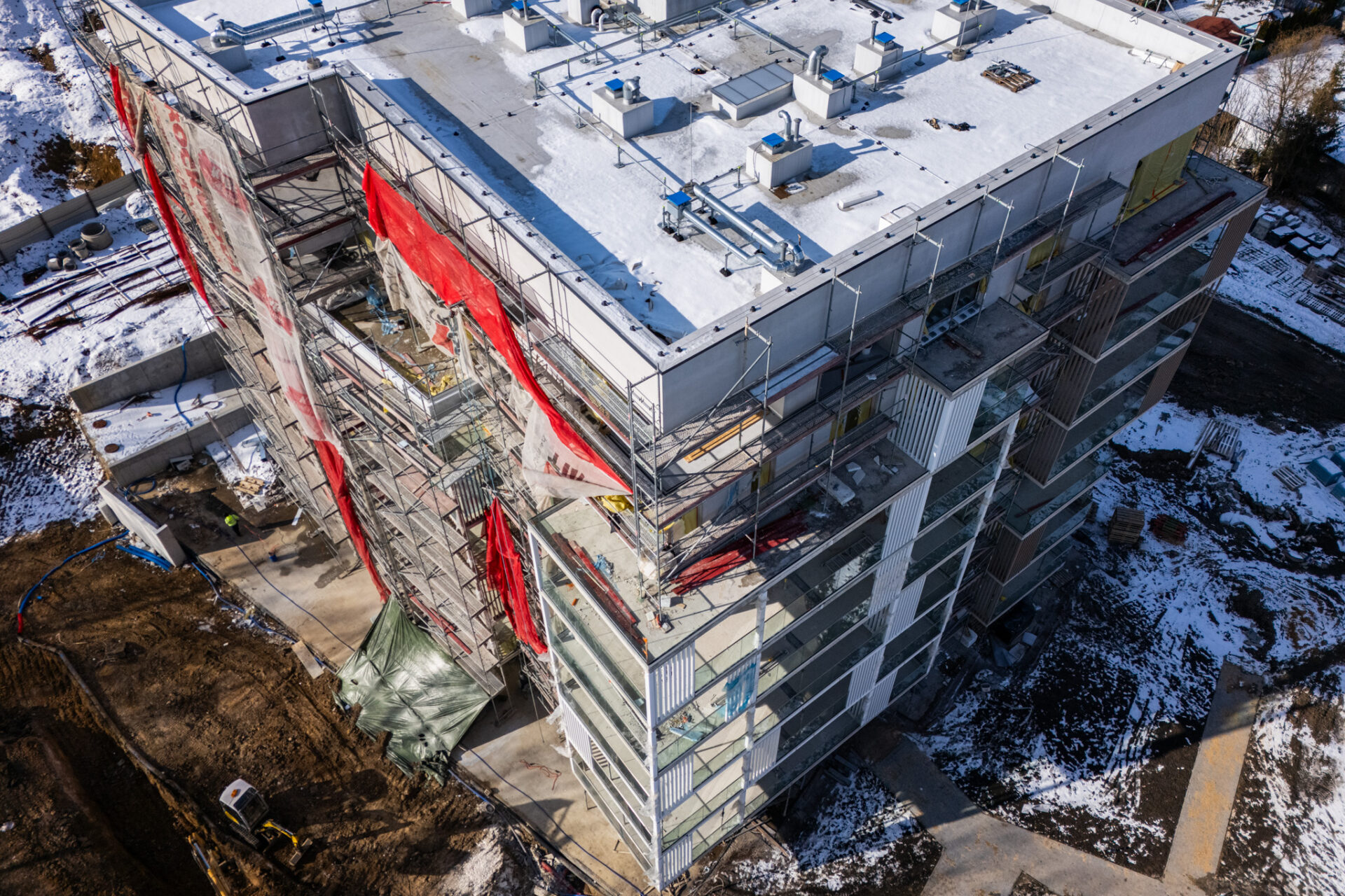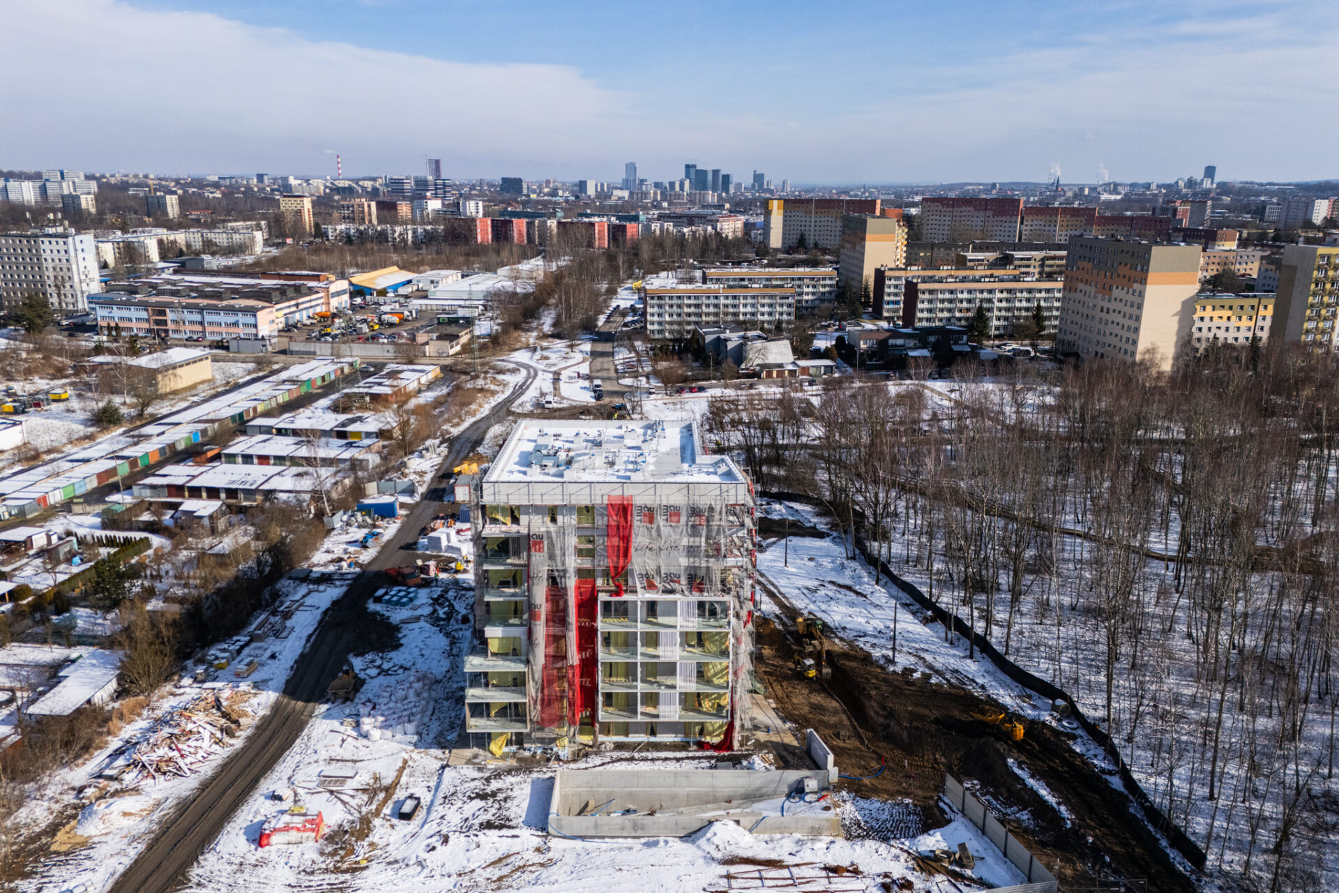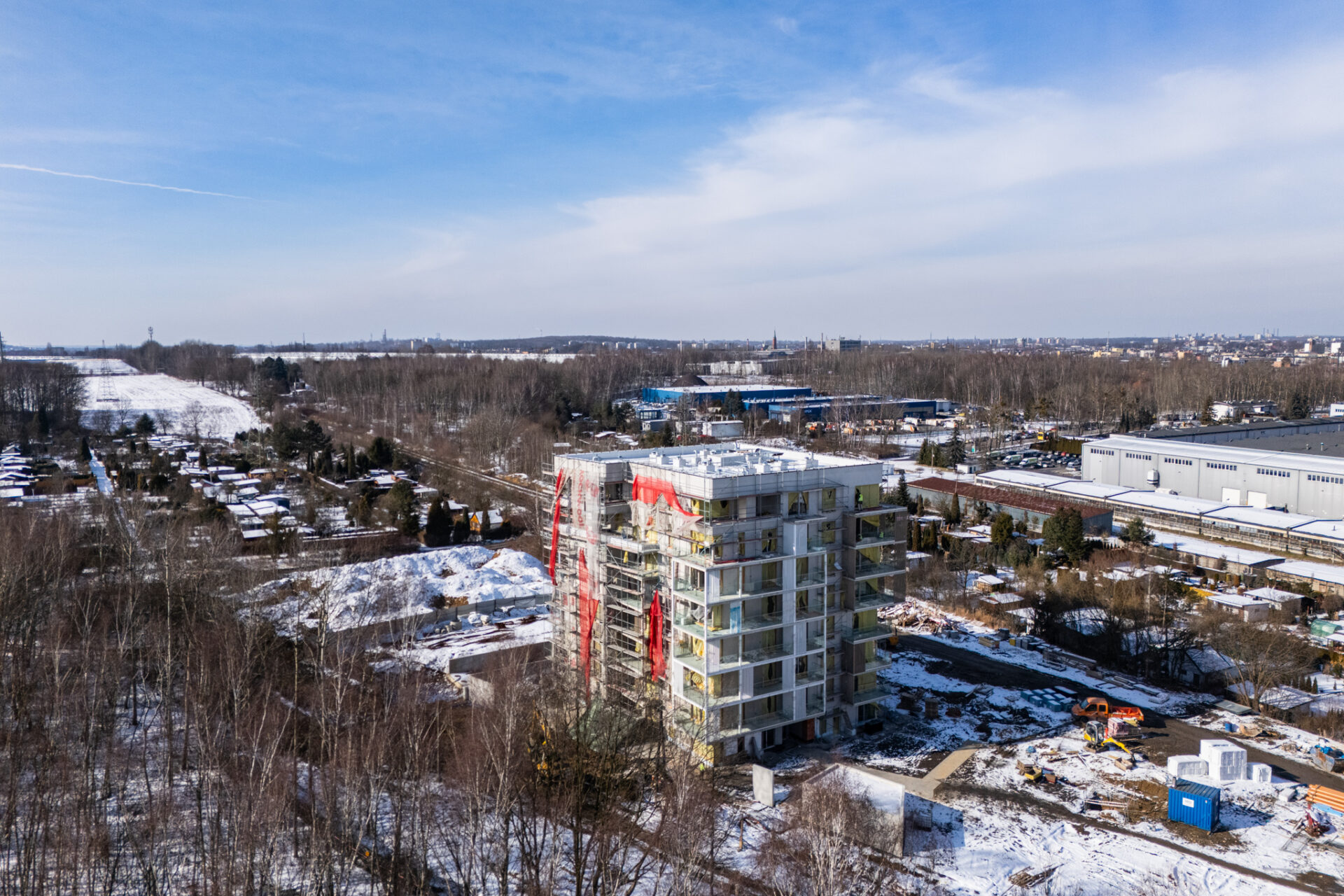 Prawdziwa zima od wielu, wielu lat w Polsce zaskoczyła chyba wszystkich. Nie możemy doczekać się więc już upragnionej wiosny, która zazieleni okolicę Grabskiego Park i która jest sprzymierzeńcem na budowach. Nadrabiamy zadania na każdym froncie w zakresie zewnętrznych prac drogowych, budowy miejsc parkingowych na terenie zewnętrznym oraz ziemnych robót w zakresie przyłączy docelowych mediów do budynku i zagospodarowania terenu. Wewnątrz trwają intensywne prace nad wykończeniem części wspólnych budynku. Mieszkania są gotowe 🙂 Oczekiwana ładna pogoda pozwoli nam dokończyć niebawem wszelkie prace elewacyjne i montażowe na zewnątrz budynku. Koniec budowy będzie widać z każdym tygodniem 🙂