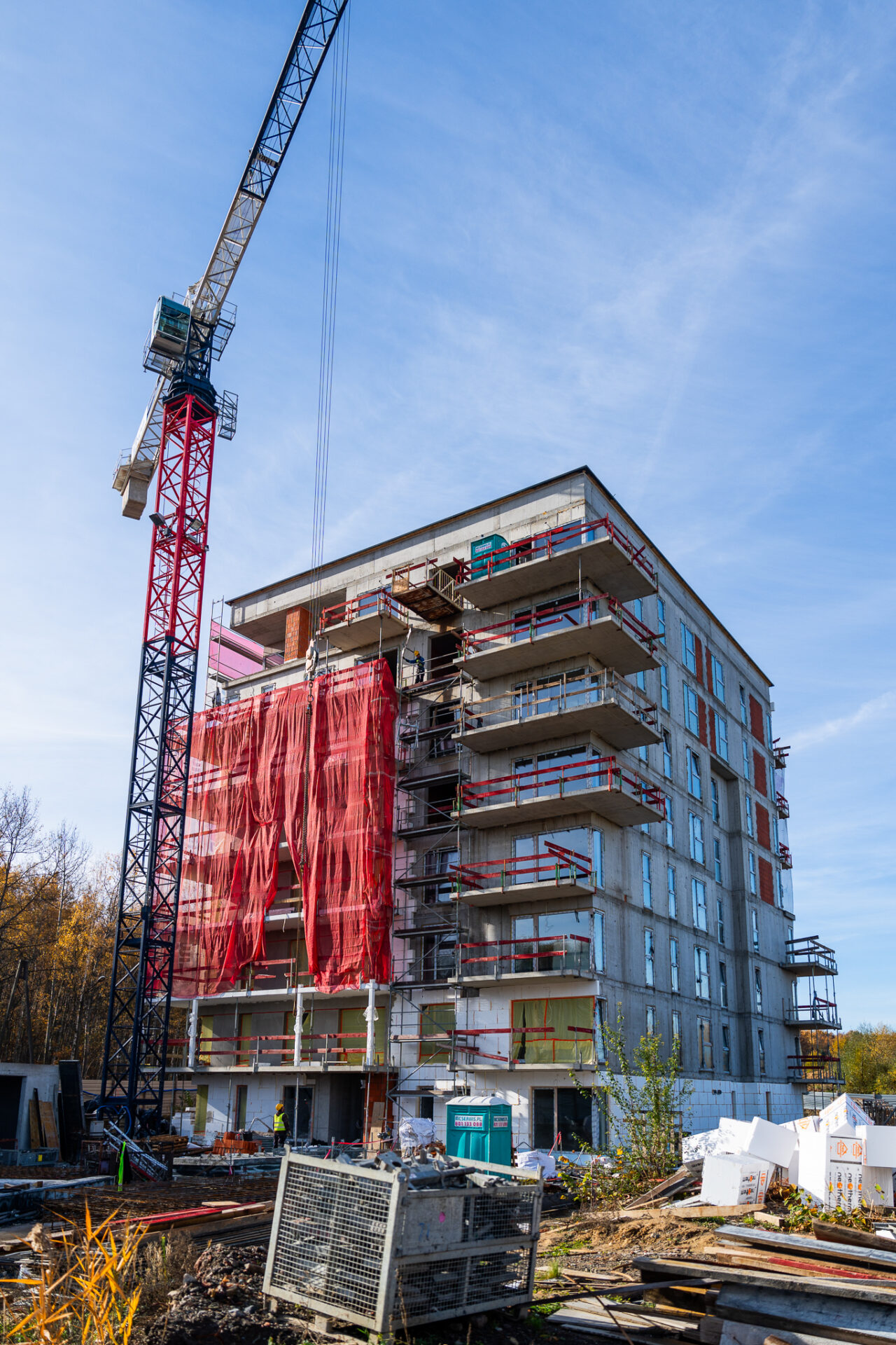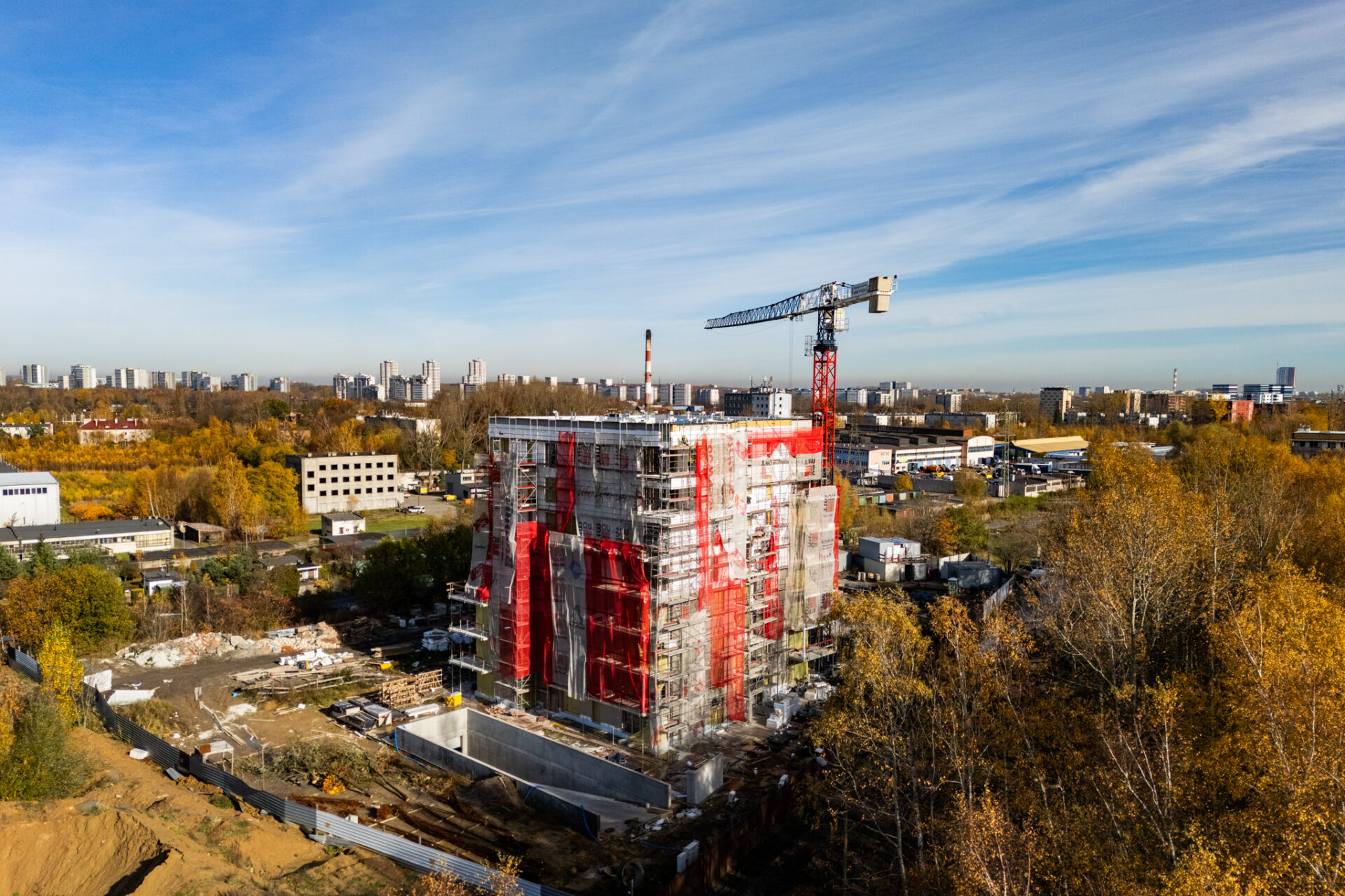 Budynek C już niebawem zobaczymy w pełnej odsłonie po zakończeniu wykonywanej obecnie elewacji zewnętrznej. Prace wykończeniowe wewnątrz trwają praktycznie na wszystkich kondygnacjach i frontach. Zainstalowana została cichobieżna winda, która obsługuje również kondygnację podziemną budynku, gdzie znajdują się miejsca parkingowe i komórki lokatorskie. Mieszkania po wykonaniu tynków i wylewek prezentują się pięknie i są wyjątkowo jasne dzięki stolarce okiennej sięgającej poziomu podłogi. Jesienny klimat przyległego bezpośrednio do budynku nowego parku miejskiego, już teraz dodaje niepowtarzalnego klimatu miejsca, gdzie powstaje osiedle Grabskiego Park.